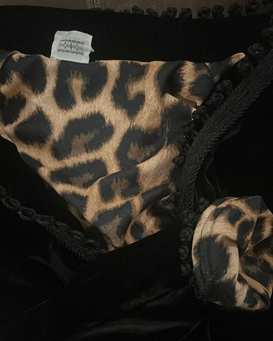 Rich Velvet Black Top with leopard fabric on the opposite side, matched with a velvet pant.
