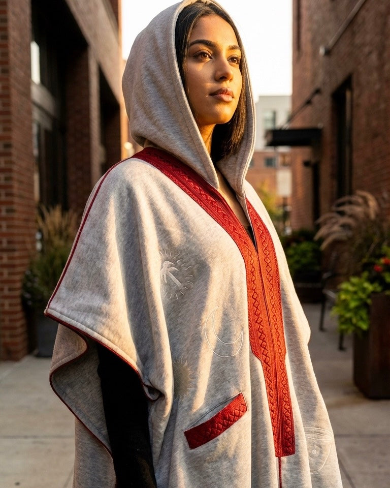 SHD X DARK DIVA - The Sahara Hoodie Bisht in Grey/Red